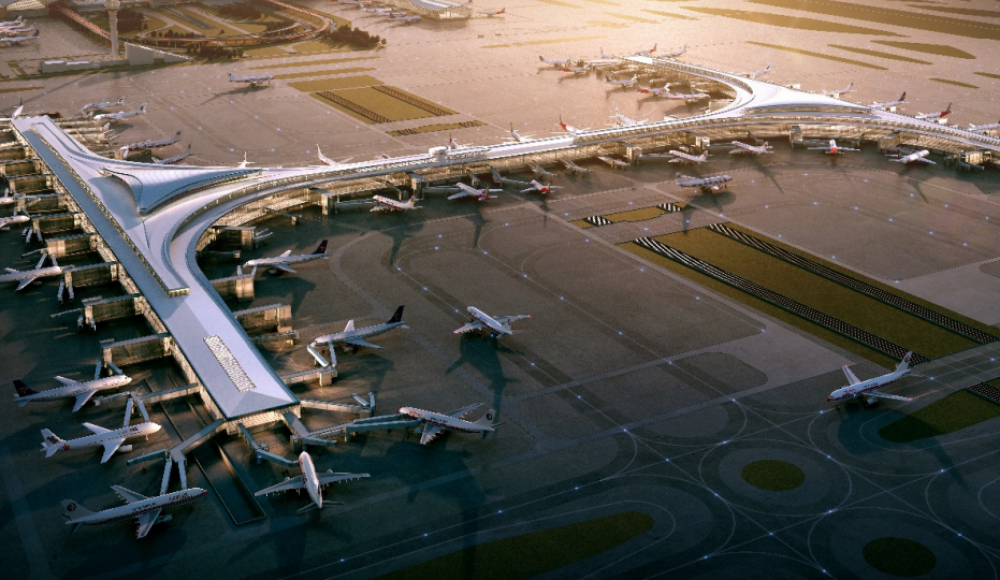 交通中心位于T1航站樓東側,總面積約80萬平方米,自東向西。自上而下將機場航站樓、磁浮、高鐵、地鐵、長途車站、公交站、出租車上客點及社會停車庫等交通設施集約布局于一體。工程地下室抗拔樁采用機械連接竹節樁7萬米。